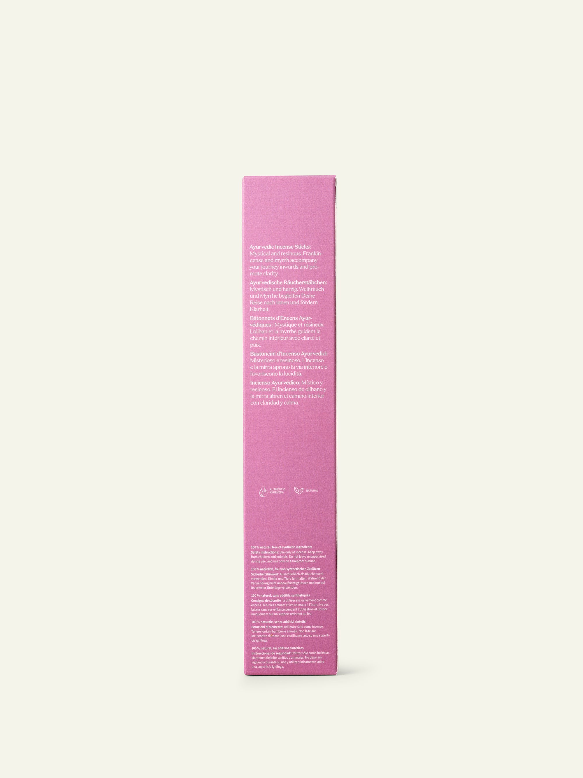 In questi Bastoncini di Incenso Ayurvedici, nuance fruttate si intrecciano con le note terrose del Sandalo, creando un'armonia che accarezza il cuore. È come una brezza calda che soffia attraverso un frutteto, diffondendo nell’aria la dolce freschezza delle bacche e avvolgendo i sensi con un tocco di terra e calore. La sottile presenza del Sandalo si intreccia delicatamente con la fragranza, come una carezza della natura. Inner Journey è un invito a costruire un ponte tra il mondo esteriore e quello interiore, tra il ritmo frenetico della vita e la serena quiete del tuo cuore.