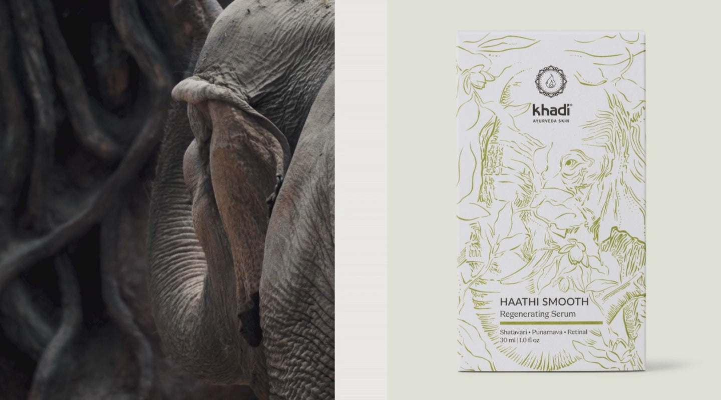 Siero khadi Haathi Smooth è un siero viso Ayurvedico che aiuta la pelle a rigenerarsi profondamente, migliorandone visibilmente l’aspetto e donandole una morbidezza immediata. Ideale per pelli secche, mature o stressate. Unisce la forza silenziosa dell’Elefante – Haathi in sanscrito – con le conoscenze della moderna ricerca dermatologica e la tradizione millenaria dell’Ayurveda.