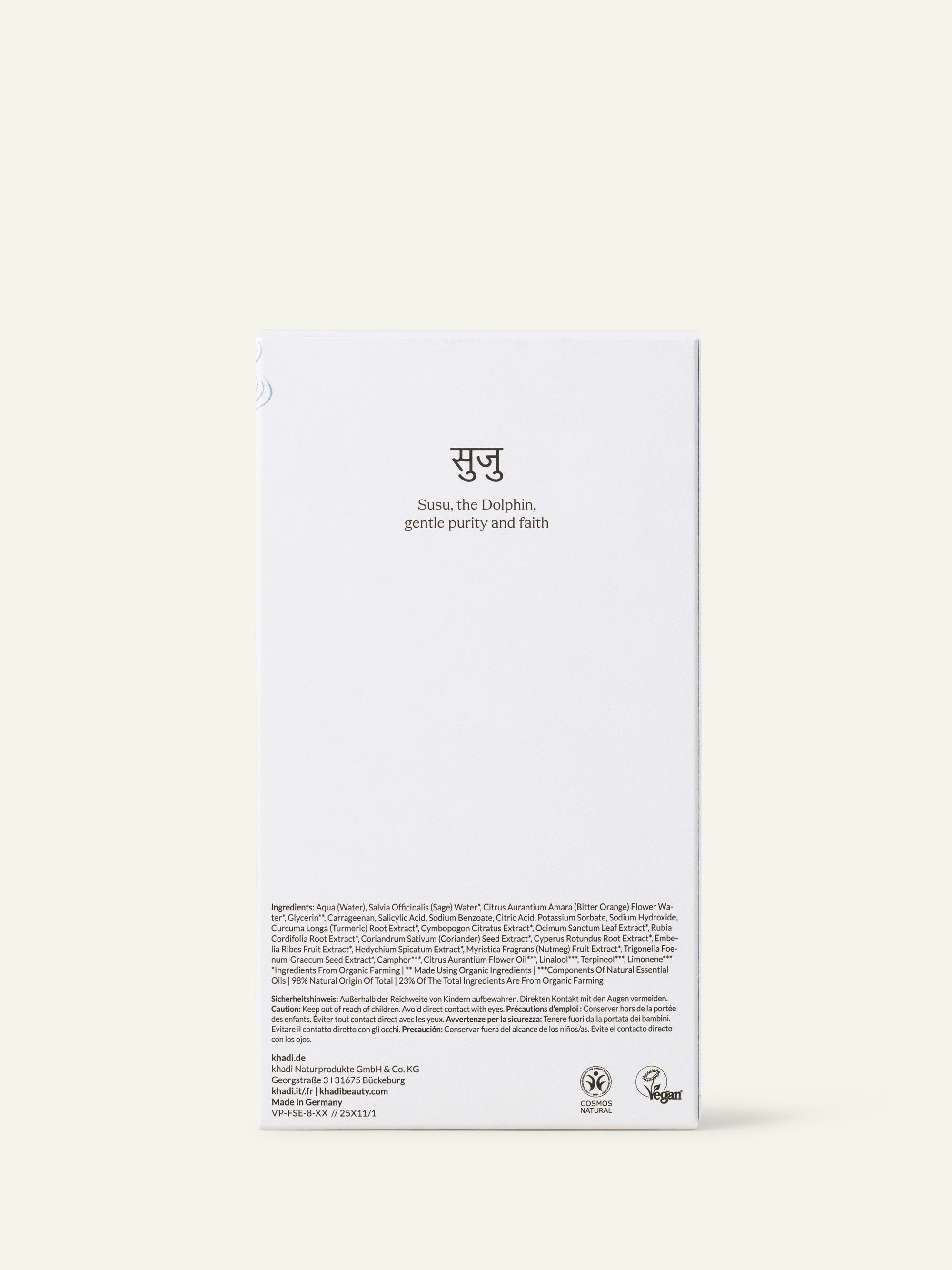 Come tutti i prodotti khadi, anche il tonico e il siero Susu Pure sono 100% naturali, vegani e privi di additivi sintetici.